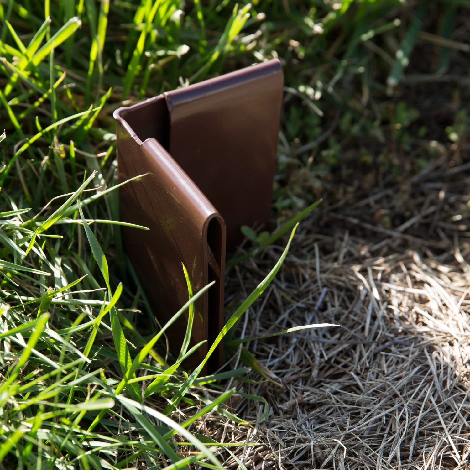 This Colmet steel edging corner stake is pre-formed to a 90ΓΒ angle. The brown, powder-coated steel corner stake will give your edging job a professional appearance. Simply cut the edging (sold separately) to the desired length and insert the ends into the corner stake before driving the stake into the ground.