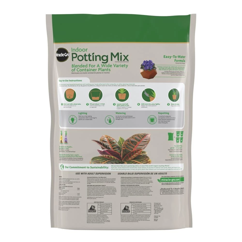 Grow amazing indoor container plants with Miracle-Gro® Indoor Potting Mix. It has been blended for a wide variety of container plants and is designed to be less prone to gnats. This mix has an easy-to-water formula that helps the soil easily re-wet while feeding for up to 6 months. Contains no compost or bark, which are known to shelter fungus gnats.