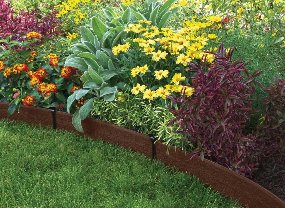 Anyone can have a professional looking garden by using the dig-in flex scape™ edging by Suncast®. Made from 85% recycled materials, the durable flex scape™ design of this product will bend easily around the curves of your garden. Five included hook-stakes allow for easy installation, using minimal tools. The natural wood grain texture of this edging blends well and complements any landscape.